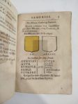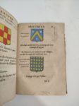 SEGOING Charles. Mercure armorial enseignant les principes et élémens du blazon des armoiries, selon l'ordre et les termes qui se practiquent en cette Science. Paris, François Clousier, 1652 ; in-4, vélin souple de l'époque. Bel exemplaire. Important traité qui a contribué à la normalisation des règles de l'héraldique. La plupart des blasons, gravés sur bois, sont rehaussés de couleurs.