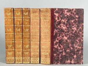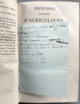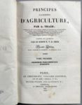 SINCLAIR John. L'agriculture pratique et raisonnée. Traduit de l'anglais par C. J. A. Mathieu de Dombasle. Paris, Mme Huzard ; Metz, Devilly, 1825 ; 2 vol. in-8 demi-basane prune, dos lisses ornés, chiffre C. D. Avec 9 planches hors-texte gravées sur métal. - Joint, mêmes reliures : THAËR A. Principes raisonnés d'agriculture. Traduits de l'allemand par E. V. B. Crud. Paris, Genève, 1831 ; 3 vol. in-8.