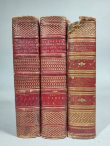 WEBER Joseph. Mémoires concernant Marie-Antoinette, archiduchesse d'Autriche, reine de France, et sur plusieurs époques importantes de la Révolution française. Londres, Daponte et Vogel et chez l'auteur, 1804-1809 ; 3 forts vol. gr. in-8, maroquin à long grain rouge de l'époque, quelques frottements, manque à l'angle supérieur d'un dos, tranches dorées. Édition originale accompagnée de 10 portraits, hors texte (rousseurs à ceux-ci). Ouvrage important et rare dû au frère de lait de la reine Marie-Antoinette.