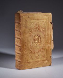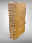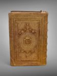 XÉNOPHON. Opera… Joannis Leunclavii Amelburni. Paris, Typis Regiis, apud Societatem græcarum editionum (Antoine Estienne), 1625 ; 2 tomes en un fort volume in-folio, reliure de l'époque peau fauve, important décor doré à petits fers sur les plats en forme d'éventail aux angles et au centre, armes dorées, dos à 6 nerfs très orné de motifs dorés, tranches dorées, restes d'attaches, petite usure à deux angles. Belle et savante édition grecque-latine bien imprimée. Exemplaire en grand papier ? MAGNIFIQUE RELIURE DÉCORÉE À LA ROULETTE ET À PETITS FERS DORÉS, AUX ARMES DE MICHEL-RAOUL DE LA GRIBOURGERE, EVÊQUE DE SAINTES DE 1617 à 1630. Cachet répété Sassy (Normandie). Remerciement à M. Alain de Grolée-Virville pour l'identification du porteur des armes.