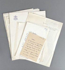 LITTÉRATURE et DIVERS. Environ 200 lettres, la plupart L.A.S. adressées à Bernard SIMIOT (1904-1996), directeur de la revue Hommes et Mondes, 1946-1960. Marcel Arland (4), Alexandre Arnoux, François-Régis Bastide (3), Gaston Baty, Hervé Bazin (2), Julien Benda, Pierre Benoit (2), Marthe Bibesco (5), René Bizet, Henri Bosco, Evangeline Bruce, Blaise Cendrars (11), Jacques Chastenet (2), Christian-Jaque, Jean Cocteau, Jacques Copeau, Jean-Louis Curtis, Daniel-Rops (2), Adrien Dansette, Maurice Druon (4), Raymond Escholier, Alfred Fabre-Luce, André François-Poncet, Christine Garnier (2), Pierre Gaxotte, Maurice Genevoix, Jean Giono (7), Serge Groussard (17), Émile Henriot (5), Philippe Hériat, Marcel Jouhandeau (2), Joseph Kessel (3), Jacques de Lacretelle (2), René Lalou, Léo Larguier (3), Maréchale de Lattre, Jean de La Varende (5), Guy Lavaud, Georges Lecomte (3), Frédéric Lefèvre, Jean Lhermitte (2), Pierre Mac Orlan (3), Gabriel Marcel, Louis Marmottin arch. de Reims, Maurice Martin du Gard, Henri Massis (2), Thierry Maulnier (3), André Maurois (6), Charles Maurras (copie d'une lettre de Barrès), Francis de Miomandre (12), Henri Mondor, Henry de Montherlant (14), Roger Nimier, Jean Paulhan (2), Jacques Perret (8), Joseph Peyré, Dominique Rolin (2), Jules Romains, Jean Rostand (6), Jules Roy (2), André Siegfried, Gilbert Sigaux, J..J. Tharaud, André Thérive, Maurice Toesca, Louise de Vilmorin (6), Marguerite Yourcenar, etc. Expert : Thierry BODIN