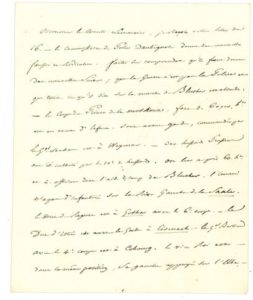 NAPOLÉON Ier (1769-1821). L.S. « NP », Mayence 21 avril 1813, au général LEMAROIS ; la lettre est écrite par FAIN ; 1 page et quart in-4. Lettre de Mayence avant de marcher sur Dresde, à son aide de camp ; le général Lemarois (1776-1836) commandait la 2e Division militaire. « Monsieur le comte Lemarois, je reçois votre lettre du 16. - Le commissaire de Police Daubignosc [Brun d'Aubignosc, commissaire général de police à Hambourg] donne des nouvelles fausses et ridicules. Faites lui comprendre qu'il faut donner des nouvelles sûres ; que la Guerre n'est pas la Police, et que tout ce qu'il dit sur la marche de BLUCHER est absurde. - Le Corps du Prince de la Moskova [NEY], fort de 60,000 h[omm]es, est en avant d'Erfurt. Son avant-garde, commandée par le Gal SOUHAM est à Weymar. - 300 hussards Prussiens ont été culbutés par le 10e de hussards. On leur a pris 60 h[omm]es et 4 officiers dont l'aide de camp de Blücher. L'ennemi n'a pas d'infanterie sur la rive gauche de la Saale. Le duc de Raguse [MARMONT] est à Gotha avec le 6e corps. Le duc d'Istrie [BESSIERES] est avec la Garde à Eisenach. Le Gal BERTRAND avec le 4e corpsest à Cobourg. Le Vice Roi [Eugène de BEAUHARNAIS] est dans la même position, sa gauche appuyée sur l'Elbe, à l'embouchure de la Saale ; son centre à Bernebourg et sa droite au Hartz. - Mandez cela au Gal VANDAMME et à l'architrésorier [LEBRUN] en Hollande, dont l'habitude est d'avoir grand peur »… Provenance : comte Le Marois (1802-1870), qui l'a communiquée pour publication dans la Correspondance de Napoléon Ier publiée par ordre de l'Empereur Napoléon III, n° 19892 [Correspondance générale, tome 13, n° 33972] ; puis descendance.