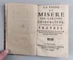 COLPORTAGE : La Peine et Misères des Garçons chirurgiens également appelez Fatres...Troyes, chez la veuve de Jean Oudot, 1739 ; in-12°, demi-basane rouge du XIXe siècle