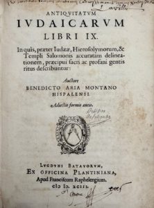 ARIAS MONTANO (Benito) — Antiquitatum Judaicarum libri IX, in quis, præter Judææ, Hierosolymorum et Templi Salomonis accuratam delineationem, præcipui sacri ac profani gentis ritus describuntur.