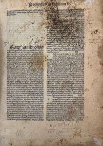 Incomplet de 2 ff. (a1 et a8) et des 32 ff. d'explication des noms hébreux en fin de volume (sign. aa-dd8). Petits manques, accidents et restaurations à la reliure, fermoirs manquants, travaux de ver et discrètes réparations aux premiers et aux derniers feuillets, mouillures et taches éparses, premier feuillé maculé.