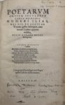 Bâle, Robert Winter, 1540. In-4, peau de truie sur ais de bois, triple encadrement de roulettes, fleurons et filets estampés à froid, dos à trois nerfs, traces de fermoirs (Reliure germanique de l'époque).Édition originale de la traduction intégrale de l’Iliade en hexamètres latins par Eoban Koch dit Helius Eobanus Hessus (1488-1540), un des plus grands poètes néo-latins d'Allemagne.