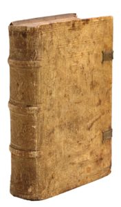 Manque dans la partie supérieure et à un coin du titre, pâles mouillures, un mors fendu, fermoirs manquants.