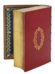 Paris, Pierre Vidoué pour Galliot du Pré, 1529. Petit in-8 de [8], 403, [1] ff., maroquin rouge, médaillon floral doré au centre, dos orné, doublures de maroquin bleu ornées de trois filets et d'une guirlande florale dorés, doubles gardes peigne, tranches dorées (Cuzin – Maillard dor.).Première édition en lettres rondes du plus célèbre des romans médiévaux.