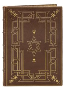 Bâle, Michael Furter, 1504. Petit in-4 goth. de [68] ff., maroquin havane, double filet doré, riche décor d’entrelacs de filets droits et courbes et de fleurons formant un encadrement et une étoile à six branches au centre, dos orné, dentelle intérieure, tranches dorées (Capé).Troisième édition illustrée de ce rare et précieux recueil de prophéties, préparée par Sébastien Brant et publiée par le libraire suisse Michael Furter, comme les deux précédentes.