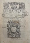 Venise, Francesco Sansovino, 1560. In-folio, vélin rigide (Reliure de l'époque).Importante édition vénitienne du principal ouvrage du canoniste galicien Álvaro Pelayo (dit Álvaro Pais en portugais et Alvarus Pelagius en latin), évêque de Silves et confesseur du pape Jean XXII, mort en 1349.