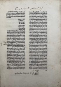 Annotations marginales et petits dessins à la plume en marge du texte. Ex-libris manuscrits en latin de Jean Gay et frère Pierre de Laloue (daté 1526) accompagnés de dessins sur les contregardes de la reliure et au colophon (f. C8).