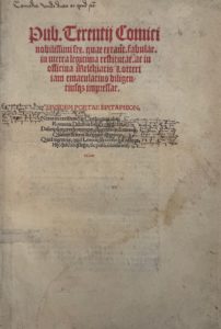 Leipzig, Melchior Lotter, 1514. In-folio, bradel demi-vélin avec coins, dos lisse calligraphié, tranches bleues (Reliure moderne).Très rare édition scolaire post-incunable des comédies de Térence.