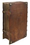 Rousseurs éparses parfois fortes, quelques déchirures sans gravité, la plupart sans manque, trous de vers sur les premiers feuillets. Reliure très brunie, trous de vers sur le premier plat et peau partiellement décollée.