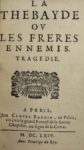 RACINE (Jean) — La Thébayde ou les frères ennemis. Tragédie.
