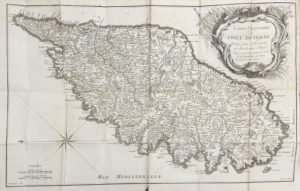 Exemplaire bien complet de la grande carte dépliante de l'isle de Corse divisée par ses provinces ou juridictions, & fiefs, gravée d'après François.