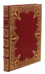 1751. Petit in-4, maroquin rouge, riche dentelle aux petits fers dorés dont deux fers de marotte répétés aux angles, dos orné, doublures de maroquin bleu ornées de dentelle dorée, doubles gardes marbrées, tranches dorées sur marbrure, étui en plein maroquin havane (Cuzin).Célèbre édition illustrée par Charles Eisen de la traduction de Nicolas Gueudeville, enrichie de notes par Anne-Gabriel Meusnier de Querlon.