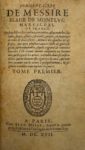 Paris, Jean Mejat, 1617. 2 tomes en un volume in-8, veau fauve, double filet doré, dos orné à la grotesque, dentelle intérieure, tranches rouges (Reliure du XVIIIe siècle).Édition rare de ces mémoires très importants pour l'histoire militaire du xvie siècle. Véritable « bréviaire du soldat » selon Henri IV, les Commentaires du maréchal de Monluc n'ont été édités qu'en 1592, à Bordeaux, quinze ans après la mort de l'auteur. Ils couvrent une vaste période, de 1521 à 1576.