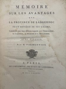 PARMENTIER (Antoine-Augustin) — Mémoire sur les avantages que la province de Languedoc peut retirer de ses grains, considérés sous leurs différens rapports avec l'agriculture, le commerce, la meunerie et la boulangerie.