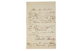 « Mon cher Boudin Pouvez-vous me prêter dix francs, jusqu'à après demain. J'ai absolument besoin de cette somme et ma bourse se trouve complètement à sec. Si cela ne vous gêne pas trop, remettez les au porteur. Excusez mon indiscrétion »...