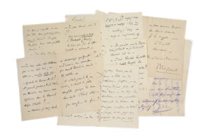 MASSENET Jules (1842-1912). — 12 L.A. ou L.A.S. (paraphe), février-octobre 1885, à sa femme Ninon ou/et sa fille Juliette ; 39 pages in-8, enveloppes.