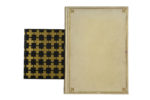 se poursuivant au dos lisse avec le titre JEANNE D'ARC en lettres dorées, encadrement intérieur ponctué des mêmes croix aux angles, doublure et gardes de moire bleue, chemise et étui assortis (chemise et étui légèrement frottés, signée René Aussourd) ; et 92 feuillets in-fol. (36 x 25,5 cm) montés sur onglets en un volume in-fol. vélin ivoire, triple filet doré encadrant les plats ponctués aux angles de f leurs de lys, dos lisse orné de même (E. Carayon).