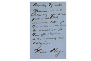 HUGO Victor (1802-1885). — L.A.S. « Victor Hugo », Bruxelles 29 août [1869], à William H. Mason à Arundel (Sussex) ; 1 page in-8 sur papier bleu, enveloppe timbrée.