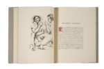 DOMINGO. — CERVANTES SAAVEDRA (Miguel de). — Rinconete y cortadillo. — Nota preliminar de Jorge Rubio y Balaguer. Barcelona, Ed. Seix Barral, 1947. — In-4, 85 p., [3] f., ill., maroquin vert olive, dos lisse, décor mosaïqué en couleurs...