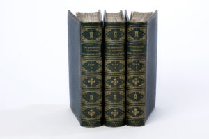 caissons ornés aux petits fers, triple filet doré aux plats, double filet doré aux coupes, dentelle intérieure, monté sur onglets, tranches dorées [Louis Guetant] (très lég. frott. sur certains nerfs; traces de poussière surtout aux vol. 2 et 3; pl. 26 mal placée).