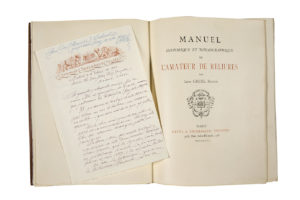 [RELIURE]. — GRUEL (Léon). — Manuel historique et bibliographique de l'amateur de reliures. — Paris, Gruel et Engelmann, 1887-1905. — Deux volumes in-4, brochés, sous emboîtage demi-maroquin grenat, dos lisse, nom d'auteur et filets...