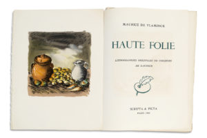 VLAMINCK (Maurice de). — Haute Folie. — Paris, Scripta et Picta, 1964. — Grand in-4, en feuilles, sous couverture verte rempliée, chemise et étui éditeur (qq. transferts de figures, étui très lég. frotté).