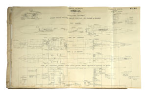 Très rare recueil de plans de construction de ce torpilleur, commandé par la Marine nationale selon les marchés passés avec le chantier naval les 27 janvier 1926 et 23 mars 1927. Il se compose de 42 plans imprimés, la plupart dépliant. Il manque ici les pl. n°1, 10, 18 et 23, le n° 16 est fragmentaire.