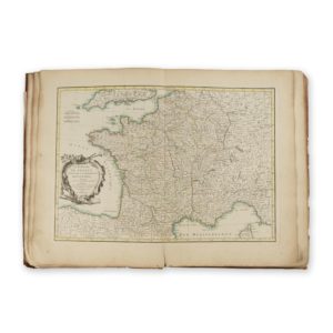 Tome I sur II, comprenant un titre-frontispice daté 1762, un feuillet d'avertissement daté 1771, 1 feuillet de table, 36 cartes montées sur onglets, 1 feuillet catalogue éditeur.