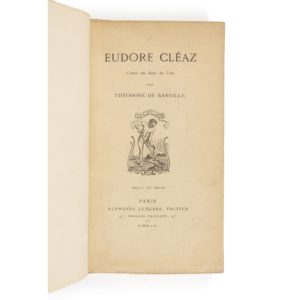 BANVILLE (Théodore de). Eudore Cléaz. Conte du jour de l'an. Paris, Lemerre, 1870. In-12, bradel, cartonnage papier peint moderne, couv. et dos conservés. Édition originale, dédiée à madame Aupick, mère de Charles Baudelaire....