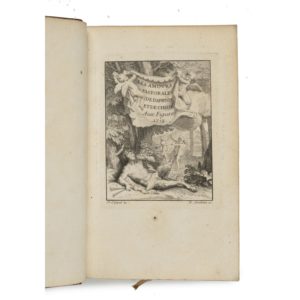 La fable, traduite du grec par Amyot, est ici illustrée d'un frontispice d'après Coypel, d'un bandeau de Scotin et de 28 figures hors texte gravées par Audran dont 13 à double page montées sur onglets, d'après la suite peinte par le Régent, Philippe d'Orléans, la plupart datées 1714.