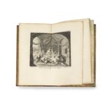 marbrures, étui (Rel. de l'époque). Cohen, 648-649 : " Jolie édition très recherchée, tirée seulement à 250 exemplaires, dite du régent parce que c'est le régent Philippe Duc d'Orléans qui l'a fait exécuter et a fait graver les estampes par Benoît Audran, d'après les peintures que le roman de Longus lui avait inspirées. " Rare premier tirage de cette célèbre et plaisante édition du "Régent". La fable, traduite du grec par Amyot, est ici illustrée d'un frontispice d'après Coypel, d'un bandeau de Scotin et de 28 figures hors texte gravées par Audran dont 13 à double page montées sur onglets, d'après la suite peinte par le Régent, Philippe d'Orléans, la plupart datées 1714. Exemplaire complet, in fine, de la fameuse gravure "aux petits pieds", attribuée à Caylus et datée de 1728, celle-ci avant la lettre. Ex-libris Georges Degryse. En bas du dos, accroc restauré et petits frottements ; quelques feuillets des cahiers E à G uniformément roussis.