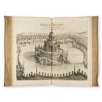Tome I, Piémont : titre-frontispice allégorique gravé par Blooteling d'après G. Lairesse, titre avec vignette, portrait de Victor-Amédée II par Gunst d'après l'abbé Bourdin, 2 ff. d'épître, une planche ornée d'un grand blason héraldique aux armes des ducs de Savoye, portrait de Charles-Emmanuel II de Savoie d'après Nanteuil, un f. de dédicace, portrait de Marie-Jeanne-Baptiste de Savoie gravé par Nanteuil d'après Laurent du Sour, un f. de dédicace, 4 feuillets de dissertation, planche "Table généalogique de la Maison royale de Savoie", 129 pp. et (1) p. de table ; 23 culs-de-lampe dont plusieurs sont similaires, 1 carte, 64 planches (dont 4 pl. simples, 55 pl. doubles, 5 dépliantes).
