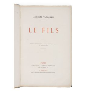 VACQUERIE (Auguste). Le Fils. Paris, Pagnerre, 1866. In-8, bradel demi-percaline bleu à coins, couv. cons. (Durvand Thivet). Édition originale. Envoi a. s. à Paul Foucher (1810-1875) auteur et journaliste, qui était le beau-frère de...