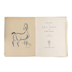 BOFA. - MAC ORLAN. Éloge de Gus Bofa. Paris, Manuel Bruker, 1949. In-folio, broché. Édition originale de cet album illustré de 9 compositions de Gus Bofa. Tirage à 200 exemplaires. Un des 20 de tête avec une suite sur japon. La...
