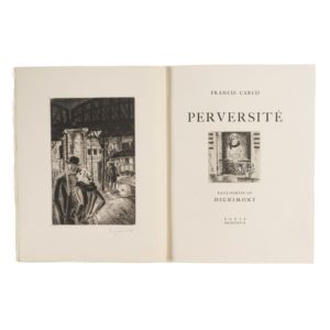 CARCO (Francis). Perversité. Paris, 1927. 2 vol. in-8 en feuilles, chemises papier roses et étui éditeur. Illustré de 20 eaux-fortes (2 vignettes et 18 hors-texte) par Dignimont (frontispice signé au crayon). Tirage à 149...