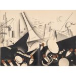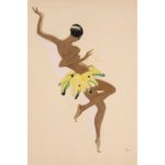 ce superbe album, célébrant Joséphine Baker et la Revue nègre. L'illustration comprend 21 feuillets (sur 22), pour 41 (sur 42) lithographies originales superbement coloriées au pochoir par Jean Saudé (dont une au verso du titre, et une sur double page), un calligramme en forme de tête sur fond blanc, un calligramme en forme d'arbre sur fond grège. L'album contient également 6 feuillets dont un double pour la justification et in fine la mention des imprimeurs ; le faux titre ; le titre ; l'introduction de Rip ; le fac-similé d'un texte de Joséphine Baker sur papier fin. Premier album de Paul Colin (1892-1985), considéré comme son chef-d'œuvre. La troupe de la Revue nègre, arrivée de Broadway avec 12 musiciens et 13 danseurs dont son étoile montante la jeune Joséphine Baker, créa son spectacle au théâtre des Champs-Élysées à Paris en 1925. Tirage à 520 exemplaires, un des 500 sur papier vélin teinté. Manque 1 f. illustré d'une des 2 lithographies des musiciens au trait blanc sur fond noir. Chemise rouge à rabats très abîmée, déchirée avec manques, collée au second contreplat de la couverture. Couverture imprimée du titre : déchirures et manques, restauration au scotch, taches, et au premier contreplat et au second plat, croquis au crayon. Reports, rousseurs et taches, quelques froissements et petites déchirures marginales. PROVENANCE : Collection de l'artiste Salomon le Tropézien