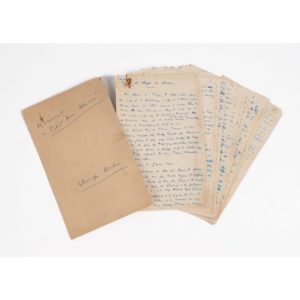 Manuscrit autographe, non signé, non daté (1955). 43 feuillets recto (env. 13 x 21 cm), certains avec corrections au verso ; en guise de couverture, un carton frappé des initiales GB à froid avec titre manuscrit, et un f. blanc in fine. Trace de trombone rouillé aux premiers et derniers feuillets, avec petits trous et manque de quelques lettre au dernier feuillet ; mouillure latérale à certains feuillets.