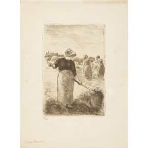 Camille PISSARRO (1830-1903) Faneuses Eau-forte et pointe sèche sur vélin Epreuve de l'état définitif numérotée "85/100" Cachet de l'atelier "C. Pissarro" dans l'angle inférieur droit Légères taches, bonnes marges Etching...