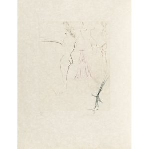 Salvador DALI (1904-1989) Femmes surréalistes, 1974 Eau-forte, pointe sèche en couleurs sur Japon nacré Signée et numérotée "XIII/CL" Quelques cassures, petites rousseurs, traces d'adhésif sur un bord au verso Etching, drypoint...