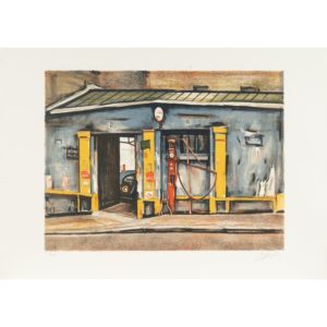 Takanori OGUISS (1901-1986) Le garage bleu, 1983 Lithographie en couleurs sur vélin d'Arches Signée et annotée "HC" En dehors de l'édition à 175 exemplaires sur vélin et des 25 sur Japon nacré Coloured lithograph on Arches wove...