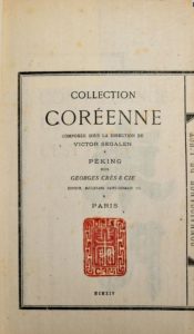 Paul CLAUDEL. Connaissance de l'Est. Pékin, Presses du Pei-t'Ang pour Paris, Crès, 1914. 2 volumes in-4 étroits cousus à la chinoise, emboîtage de soie bleue avec fermeture à la chinoise. Talvart, III-147-3c /// I. (3f.)-107 / II. 109 à 225 Troisième édition, en partie originale, reproduisant le texte de la seconde édition de 1907, publiée dans la Collection coréenne, composée sous la direction de Victor Segalen, à Pékin. Impression noire sur doubles pages pliées avec lettrines en rouge et noir. Tirage à 630 exemplaires, celui-ci un des 570 sur vergé pelure (n° 103). Exemplaire parfait malgré des points de décoloration à la soie de l'emboîtage.
