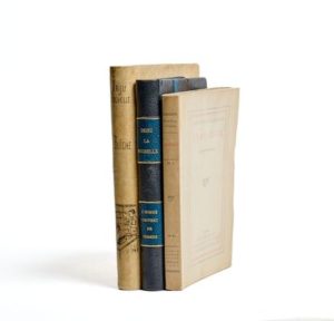 Pierre DRIEU LA ROCHELLE. Blèche. Paris, NRF, 1928. In-4, vélin coquille d'oeuf, dos lisse avec motifs peints, tête dorée, couverture (Reliure un peu postérieure). Lh, 211 // Talvart, IV-326-9-3-6 /// 235-(1f.) // 189-(1f.) // 221-(1f.) Édition originale. Un des 109 exemplaires réimposés au format in-4 Tellière (n° XCVII). On joint du même auteur : - État civil. Paris, NRF, 1921. In-12, broché. Ex. sur vélin. Envoi autographe signé. - L'Homme couvert de femmes. Paris, NRF, 1925. In-12, demi-chagrin bleu à coins, dos lisse, couverture (Reliure postérieure). Ex. sur vélin (n° 686).