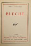 Pierre DRIEU LA ROCHELLE. Blèche. Paris, NRF, 1928. In-4, vélin coquille d'oeuf, dos lisse avec …
