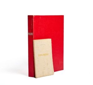 Léon-Paul FARGUE. Tancrède. Paris, s.n., 1911. In-12, broché. Lh, 242 // Talvart, V-315-1 /// 62-1f. Édition originale. Tirage limité à 212 exemplaires, celui-ci un des 200 sur Arches (n° 91). Couverture tachée et rousseurs à plusieurs feuillets. On joint du même auteur : Poisons. Paris, s.n. (Daragnès), 1946. In-4, en feuilles, chemise et étui. Édition originale ornée de 25 gravures originales sur cuivre d'Élisabeth Marie Burgin. 1/220 papier pur fil du Marais (n° 68).