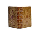 écoinçons et d’un large médaillon ovale à fonds dorés avec semé de fleurettes dorées, dos à 4 nerfs orné d’un fleuron répété, tranches dorées (Reliure de l'époque).