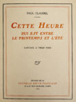 Paul CLAUDEL. — Cette heure qui est entre le printemps et l’été. — Cantate à trois voix. — Paris, N.R.F., 1913. — Grand in-4, demi-maroquin bleu, dos à 5 nerfs, couverture (Le Douarin).